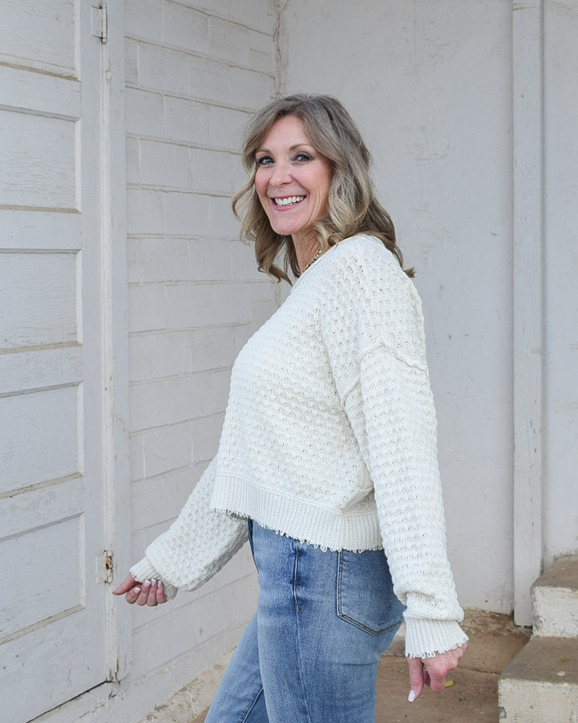 ASHLEY TEXTURED LONG SLEEVE SWEATER- CREAM