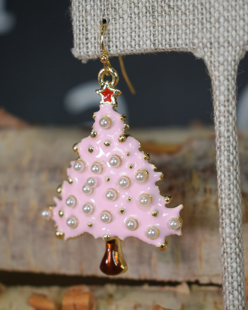 CHRISTMAS TREE WITH PEARLS EARRINGS - PINK