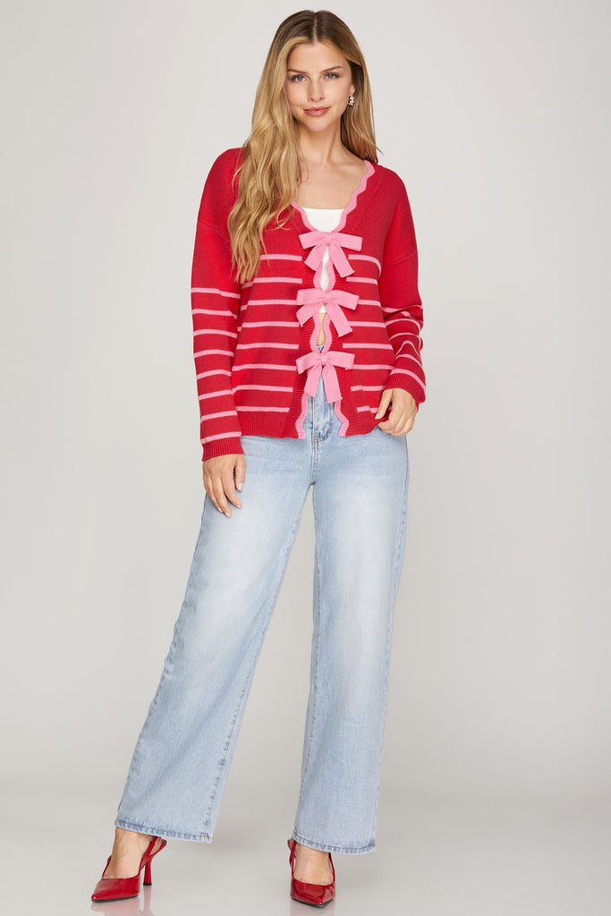 SHE'S A CUTIE REVERSIBLE SWEATER CARDIGAN - PINK/RED