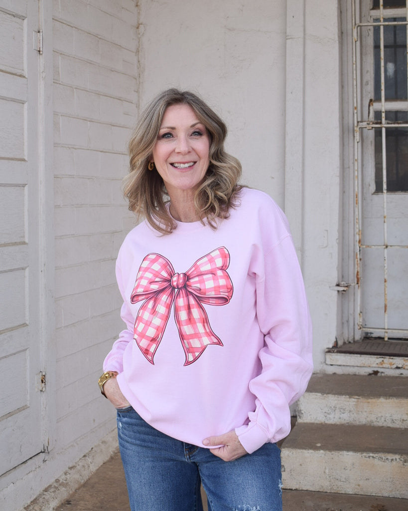 BIG ON BOWS PINK PLAID SWEATSHIRT - PINK