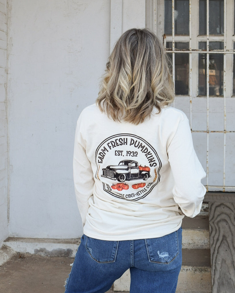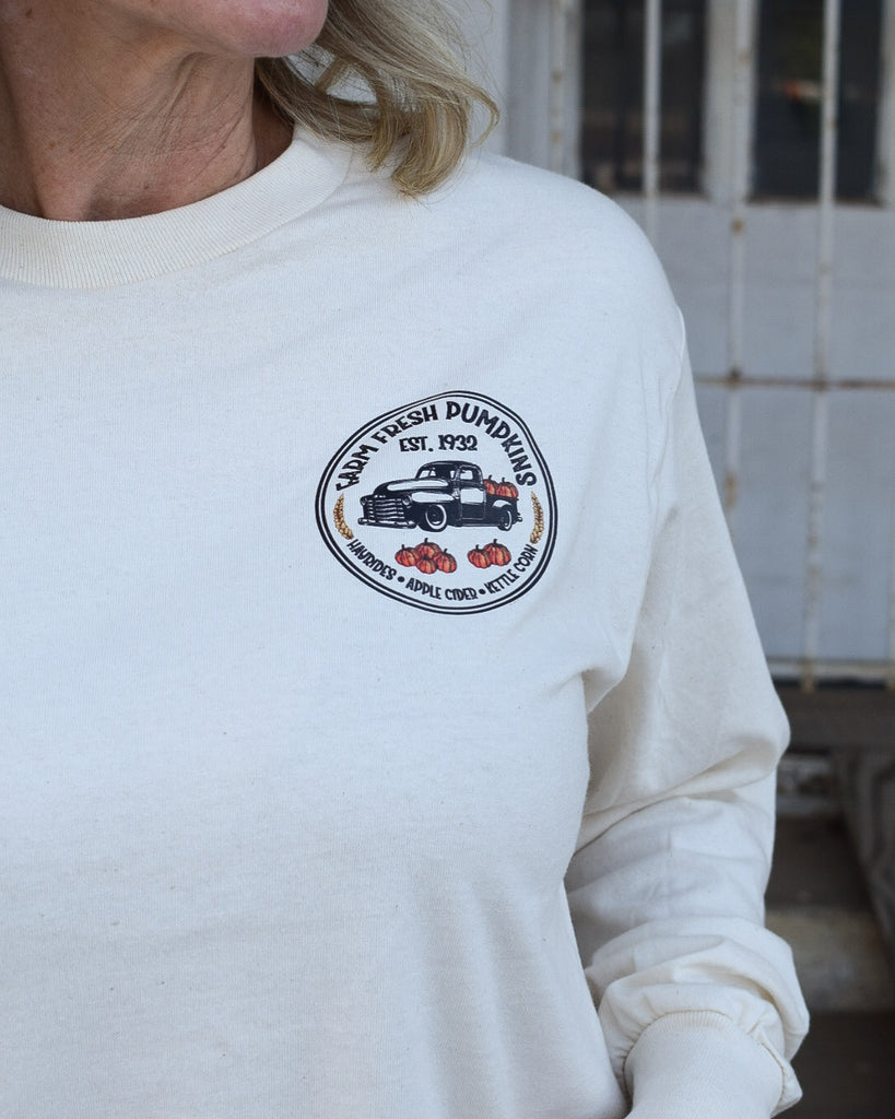 FARM FRESH PUMPKINS LONG SLEEVE GRAPHIC TEE - OATMEAL