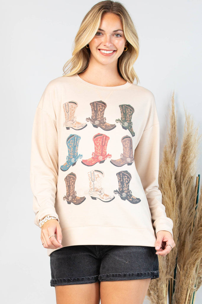 KACY WESTERN BOOTS GRAPHIC SWEATSHIRT - KHAKI