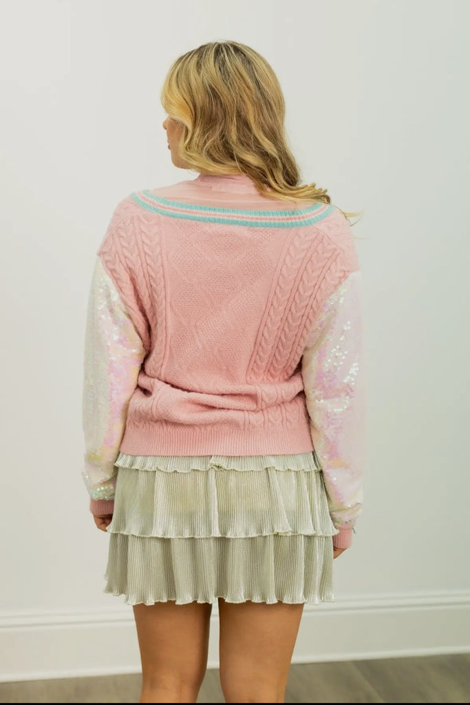 SNOWMAN CARDIGAN WITH SEQUIN SLEEVES