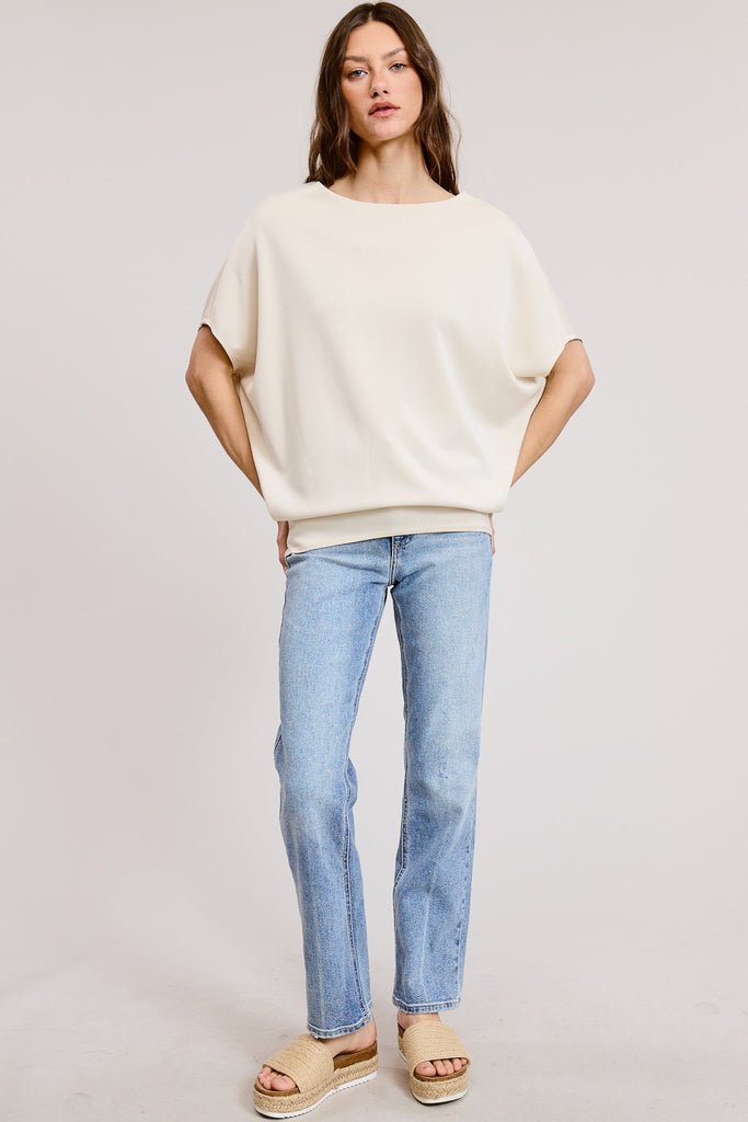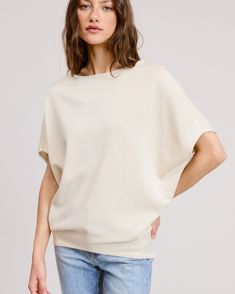 CLAUDIA SHORT SLEEVE DOLMAN TOP - STONE