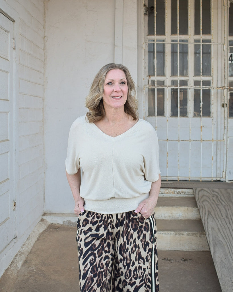 DOUBLE V SHORT SLEEVE TOP- OAT
