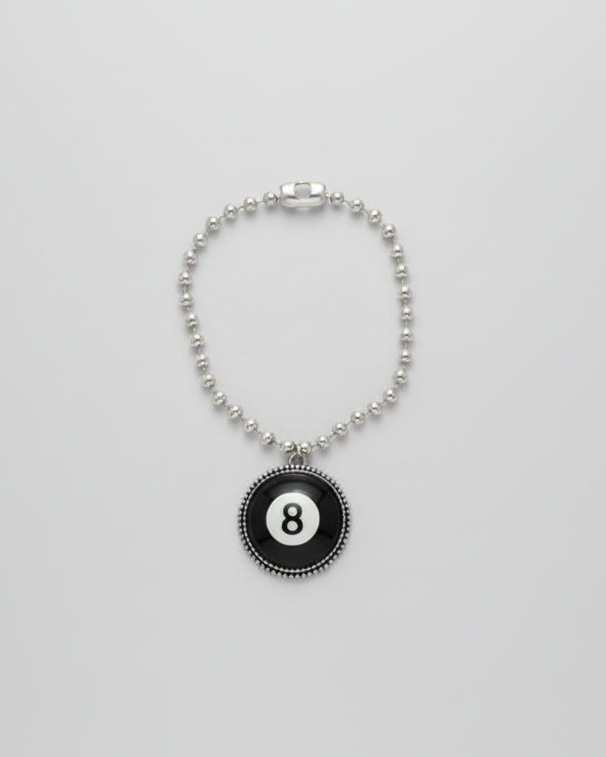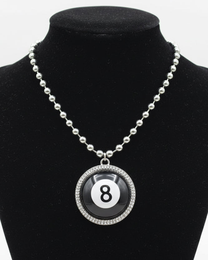 Channel your inner pool shark with this striking Eight Ball Necklace in silver. This bold pendant captures the mystique of the classic game piece, making it the perfect accessory for anyone who loves retro vibes and a touch of edgy charm. Whether you're channeling '90s nostalgia or just want to add some playful attitude to your everyday look, this necklace delivers serious style points. Wear it solo for maximum impact or layer it with other pieces for a personalized vibe.