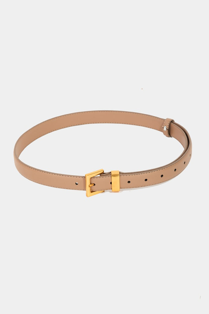 This belt introduces a unique leather square buckle style. Unveil modern elegance with this subtly intricate belt.