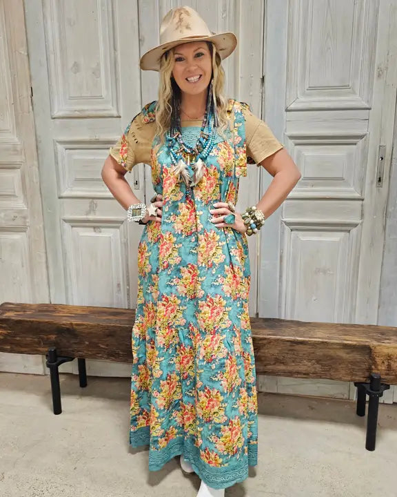 FLORAL DRESS - BY A RARE BIRD - TEAL