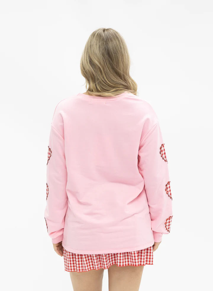 GINGHAM "LOVE" SWEATSHIRT - PINK