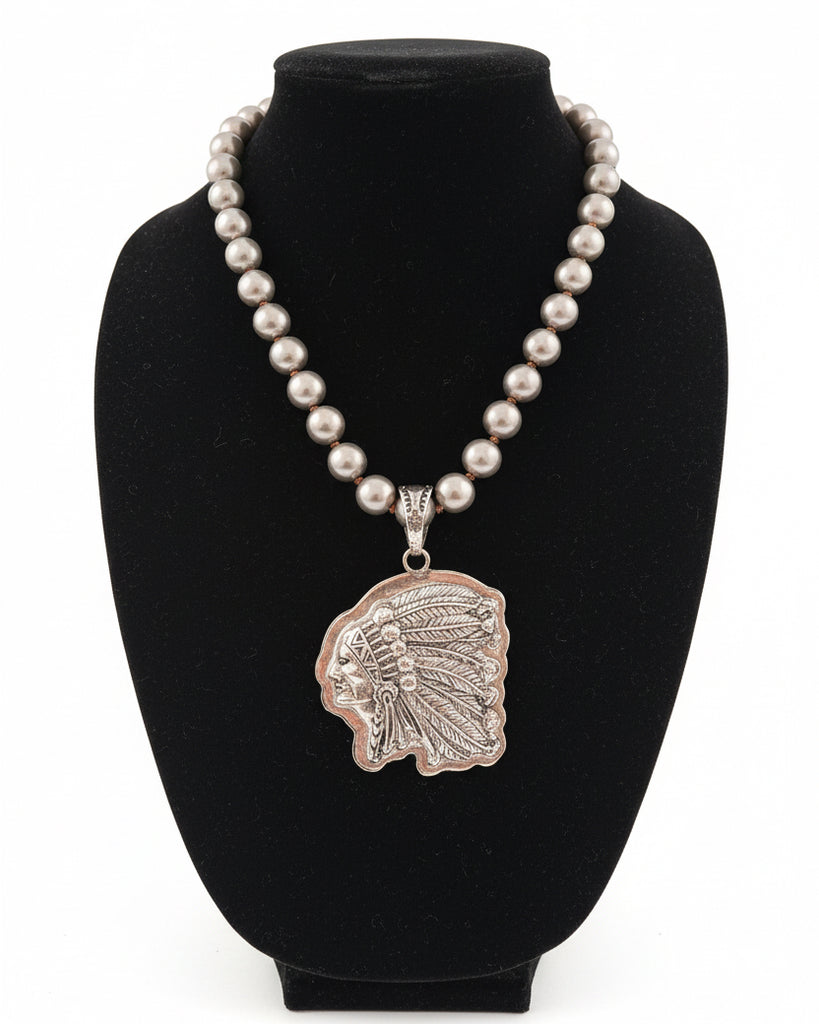 INDIAN CHIEF CHUNKY NECKLACE - SILVER