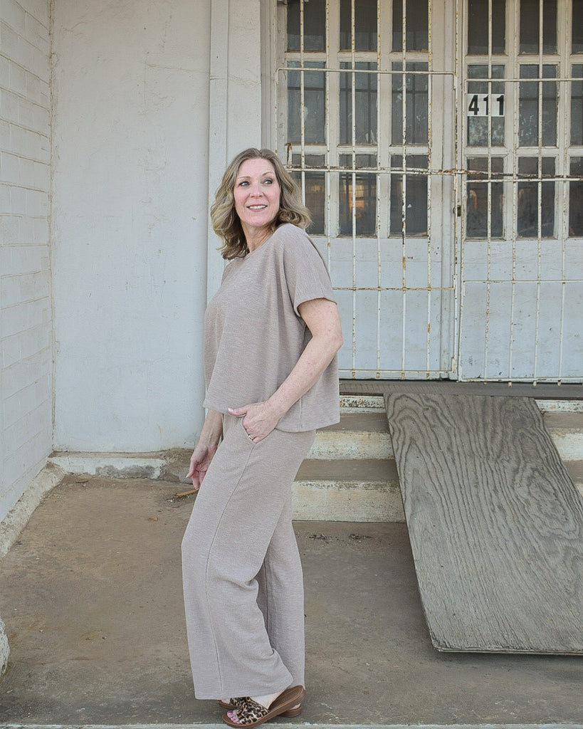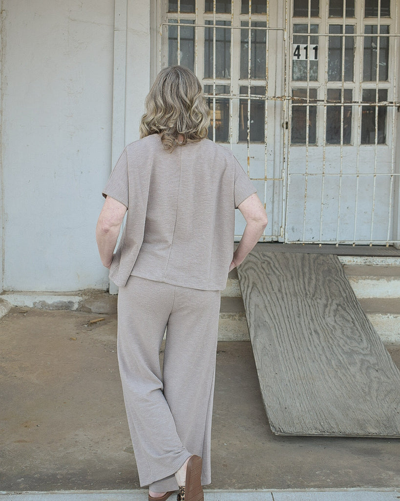 The JANET PANT SET is your go-to comfort essential. The pullover top features a relaxed boxy fit with a round neckline, short sleeves, and a flattering side slit. Pair it with the matching long pants—complete with functional side pockets, an elastic waist, and a lightweight slub knit fabric that moves with you. Crafted from a breathable blend of 59% cotton, 39% rayon, and 2% spandex, this set delivers stretch and durability without sacrificing comfort. The fabric is soft, lightweight, and perfect for all-day wear.