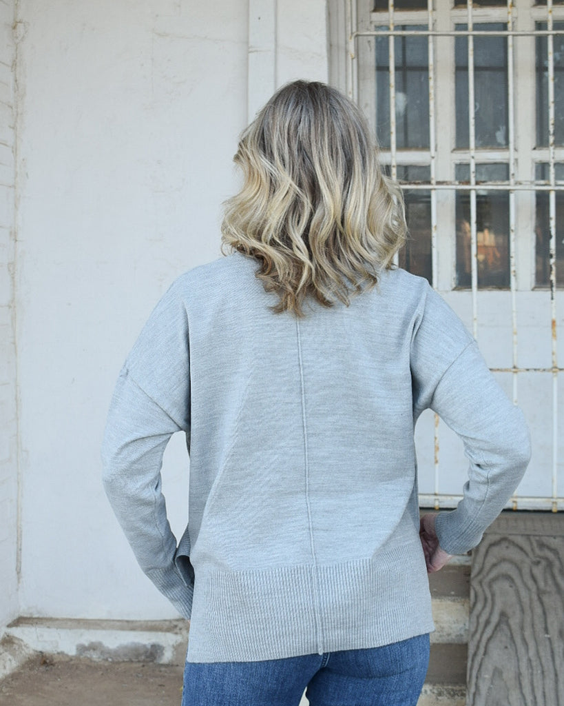 - Features: Relaxed body, Round neck, Rolled hem, Dropped shoulder, Raw edge details, Long sleeve sweater.