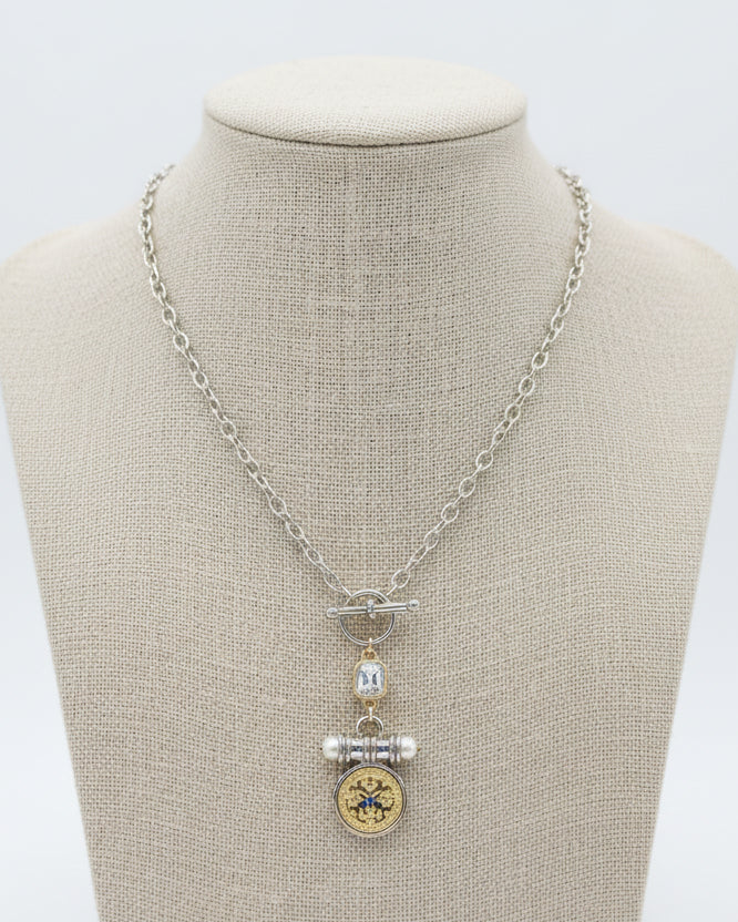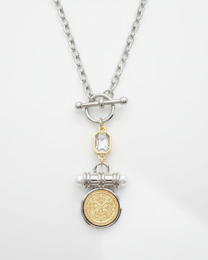 ROMAN COIN JEWEL PENDANT NECKLACE - SILVER - Salty Lime Boutique