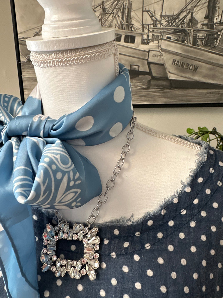 Tie one on and let your free spirit shine. This light blue wild rag brings effortless boho vibes to any outfit—drape it around your neck, wrap it in your hair, or knot it at your waist for instant wanderlust energy. Perfect for the girl who dances to her own rhythm and isn't afraid to make a statement. By A Rare Bird, because ordinary is overrated.